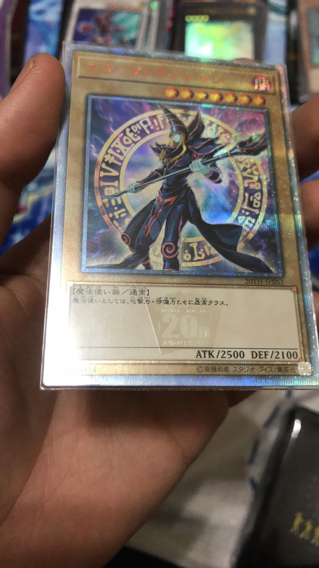 從黑魔導為例,大圖非常明顯。除了整張卡片用鑽面工法之外,在卡片下方還有 20th 的浮水印,真的太漂亮啦~❤。