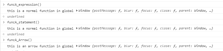 在 Global 中基本上並無差異,原因是不論是一般 function 還是 Arrow function 都該綁定到 Window,這很好理解。