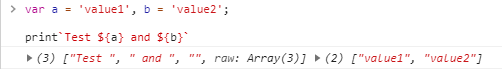 這次,我們看到第一個參數接收的 array 為依照 ${} 的位置間格而成的字串;而第二個參數則是將 ${} 內的變數收集起來。