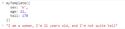 const myTemplate = props => dynamicTamplateString(props)`I am a ${ | |
