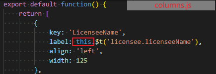 第一張圖中的 this 會指向 vue instance,因此即使在 function 中並沒有定義 $t ,卻依然可以使用 $t 的功能。