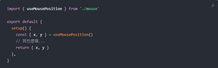 Composition-API 只依賴其參數以及 Vue3 的 API,而不依賴 this 。我們可以將組件內任何邏輯抽離出來進行複用,甚至導出整個 setup ,來達到 extends 的效果。