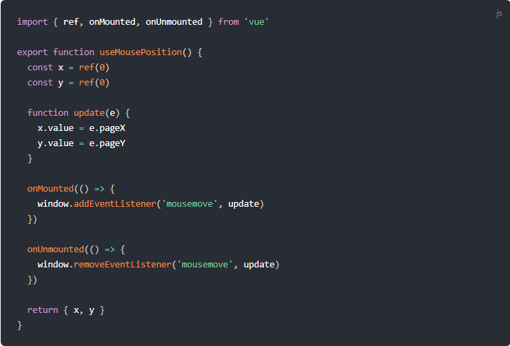 因為基於 Composition-API ,我們可以更容易地將相同邏輯的程式碼抽離出 Components,僅在需要的時候在引入。