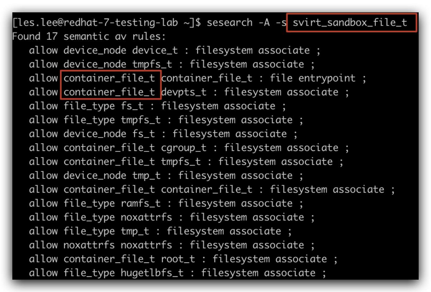 另外我們可以使用 sesearch -A 查詢什麼類型的 process 可以什麼 type 的 file。