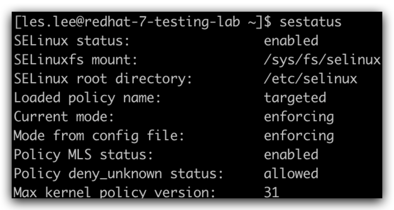 我們可使用 sestatus 查看目前 SELinux 的工作狀態