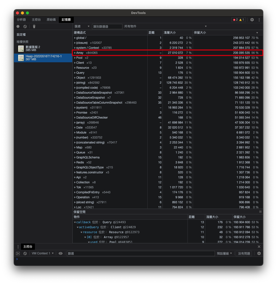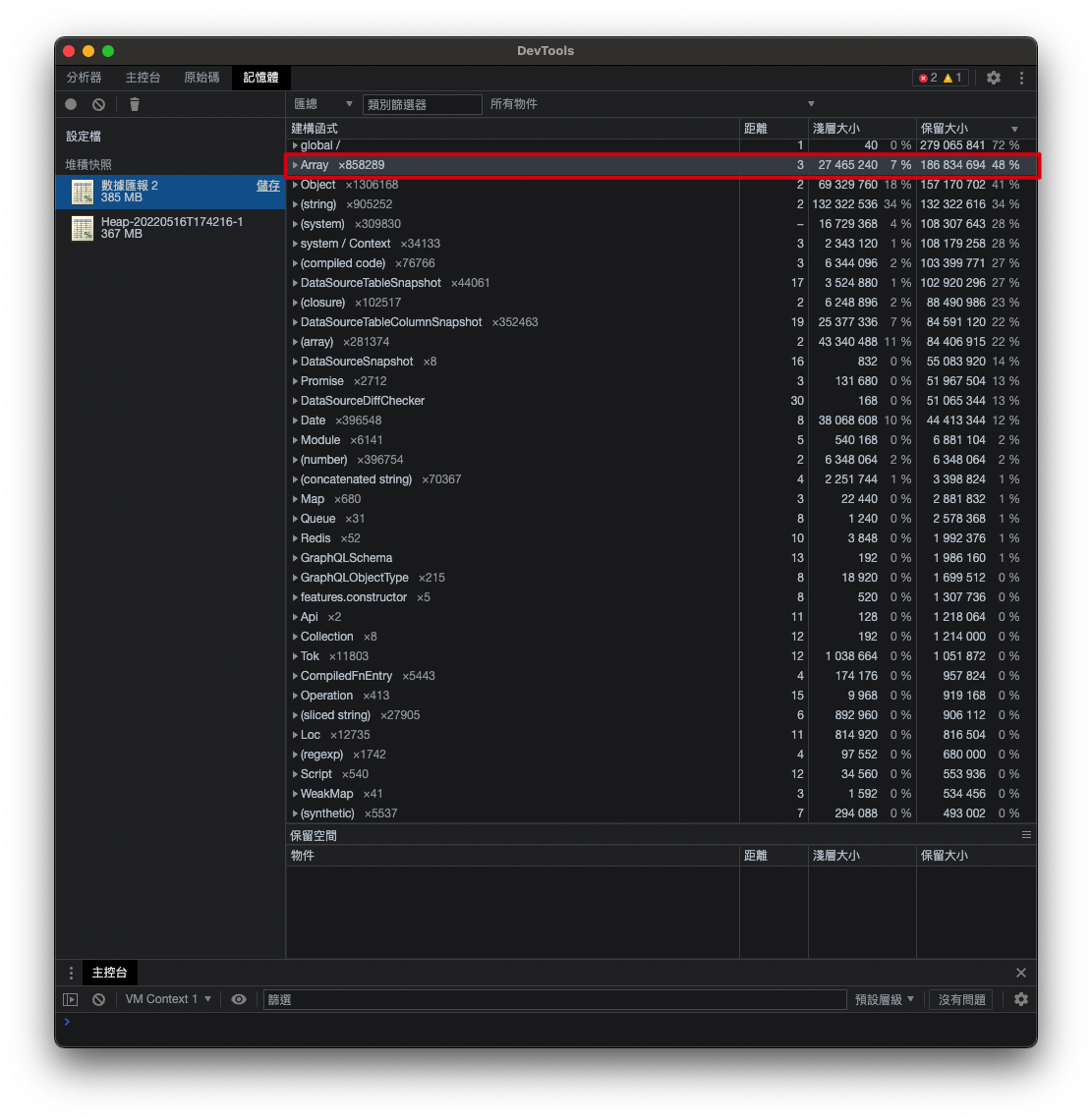 但是隨著某個 API 的呼叫,大大地增加了 Array 在記憶體中的使用量。