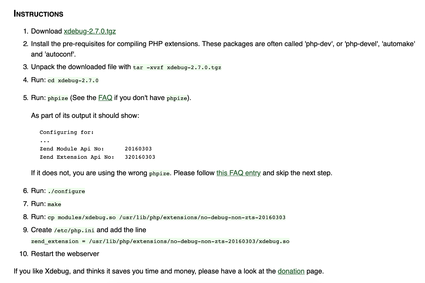 依照這個 extension 的安裝說明。我們點選其中所附的 XDebug 連結。