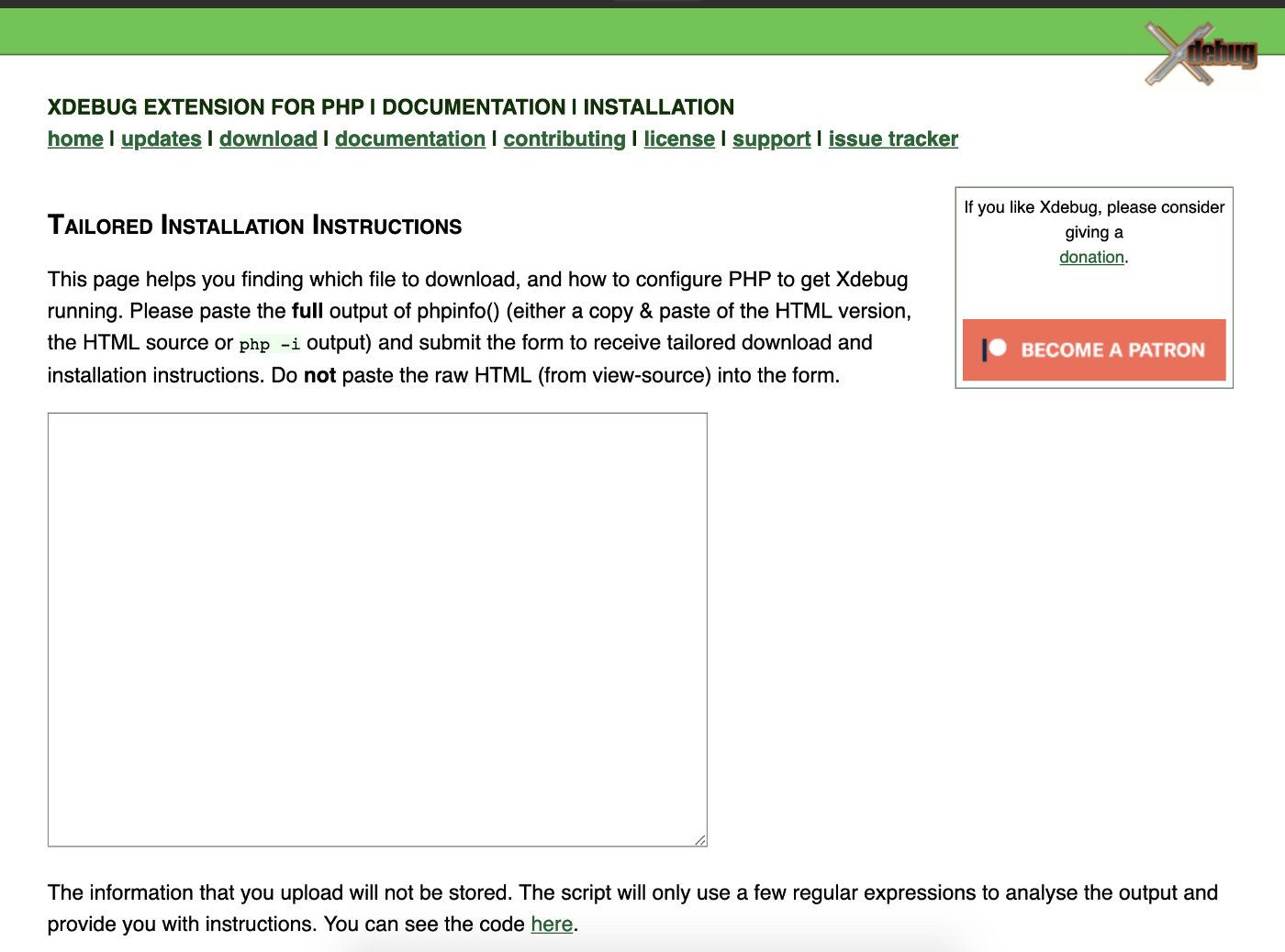 我們將剛剛得到的  phpinfo  整份網頁 全選 並且直接 貼上 至這個 Textarea 中。這個網站會自動分析你的 php 執行環境,並且給予適當的 XDebug 安裝方法。