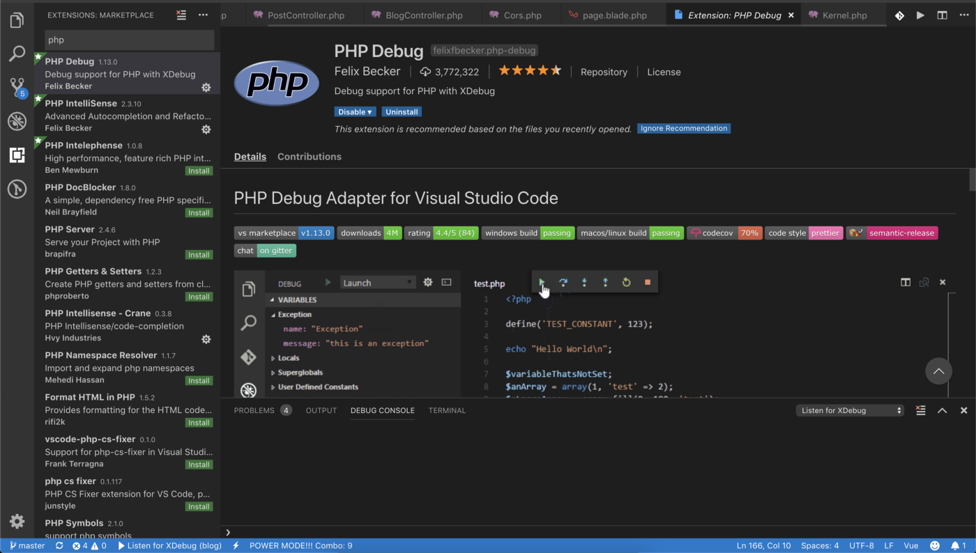 安裝完後,這個外掛本身並不能直接執行。我們需要另外安裝真正的 php debug 工具 — XDebug